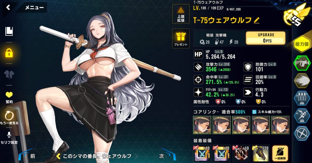 装備:改良型出力強化回路×2、掩襲型戦闘システム、チョコ