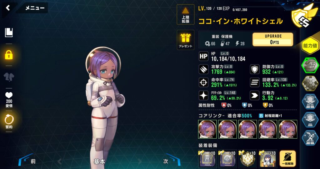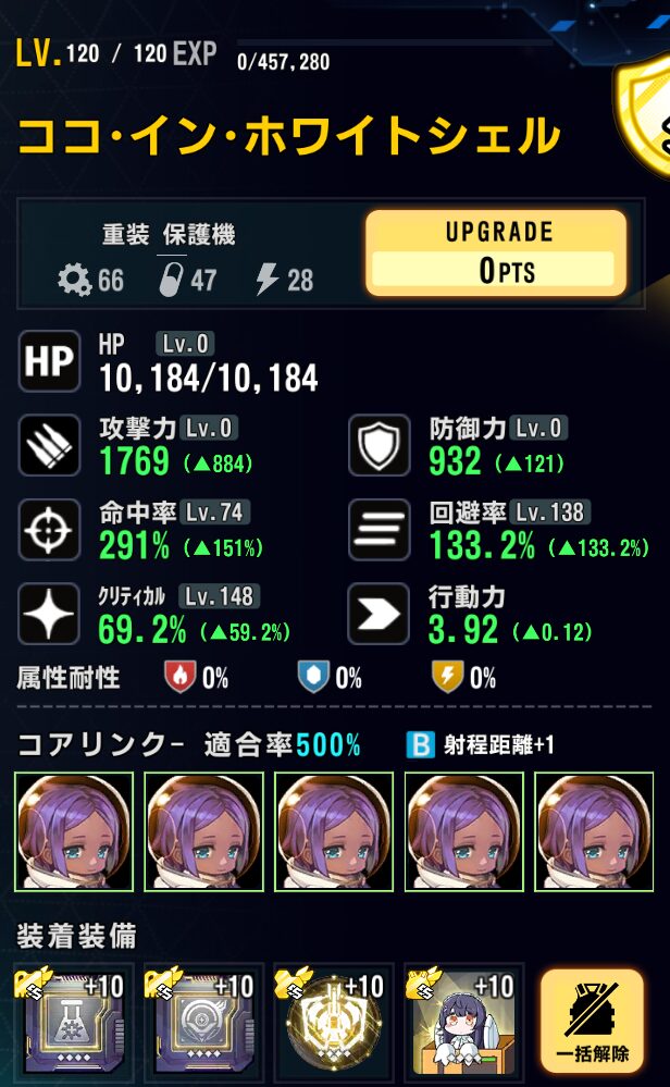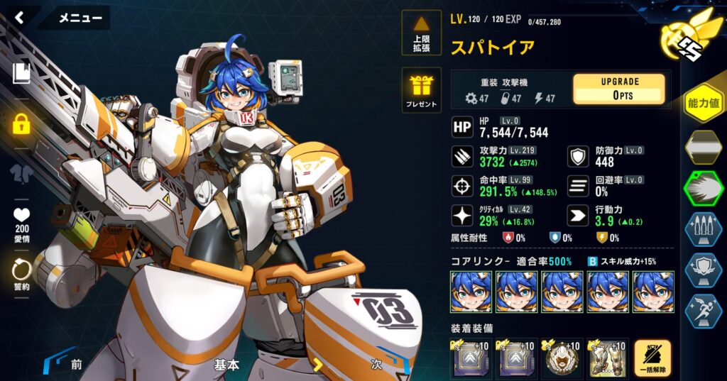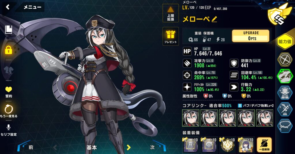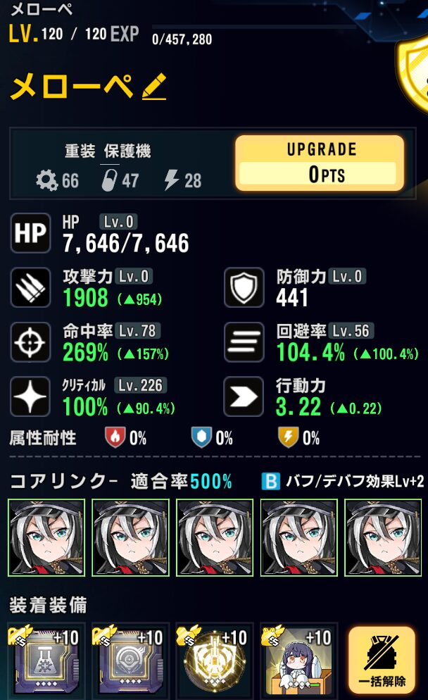装備:BR突撃回路、BR最適化回路、重装型攻撃最適化システム、チョコ