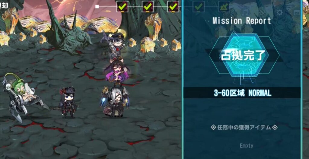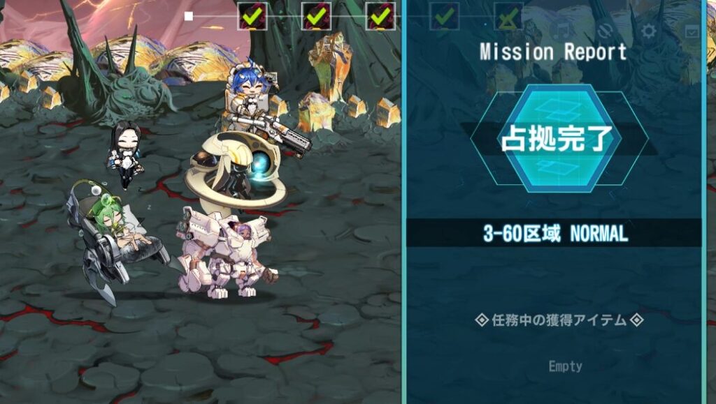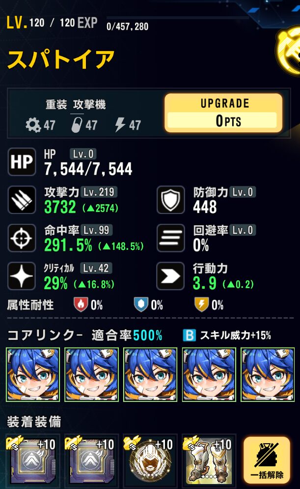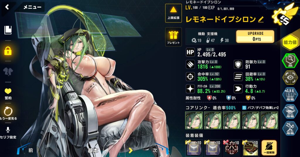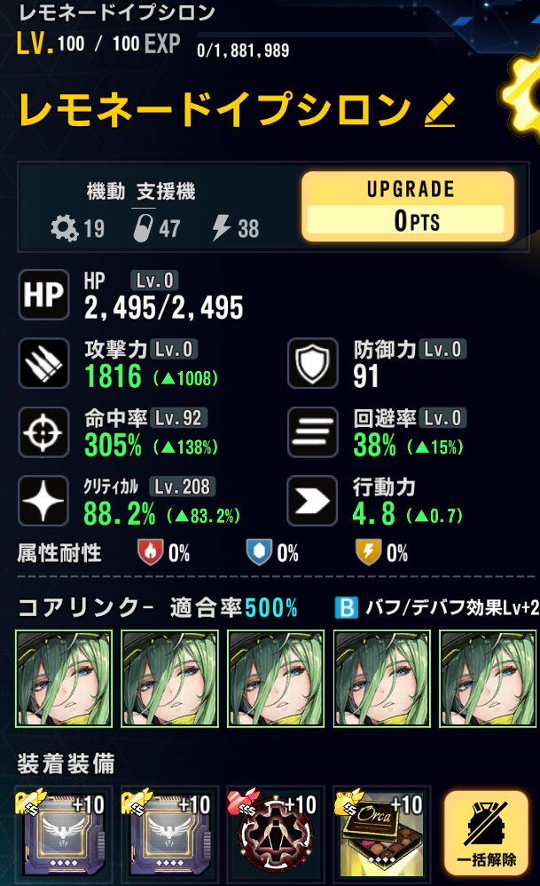 支援攻撃が範囲攻撃なので、範囲ダメージ分散に引っかかったり火力が出にくい場面もあるが、結局はゴリ押し。イプシロンのおかげで手数がかなり増えたのが強い。