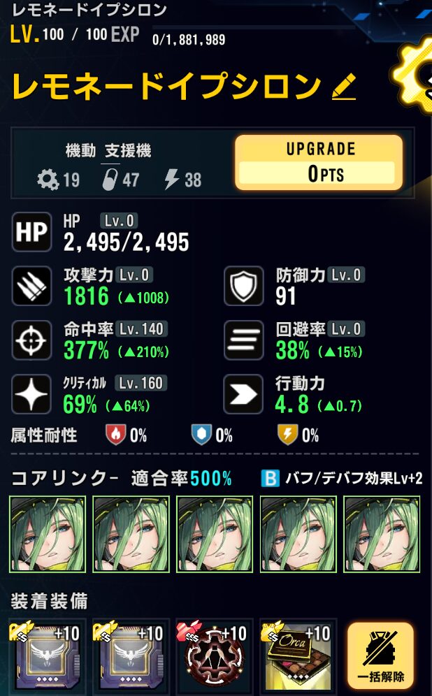 他のレモネードシリーズは編成の縛りが大きいのに、イプシロンは編成の制約がほぼないのが便利。