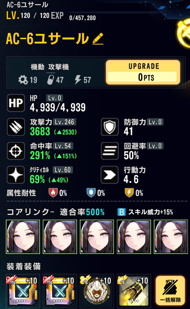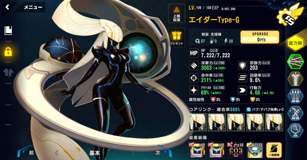 装備:改良型出力強化回路×2、掩襲型戦闘システム、専用装備