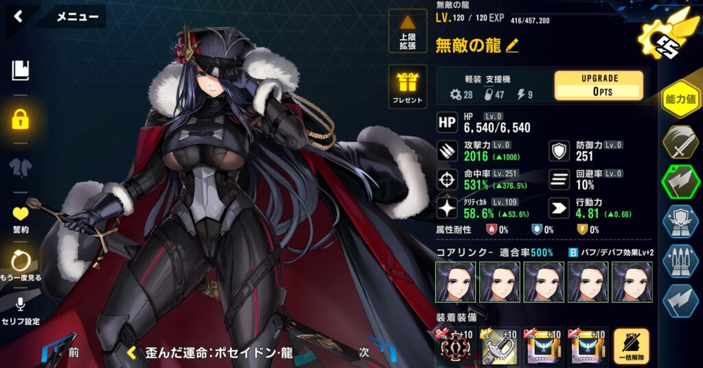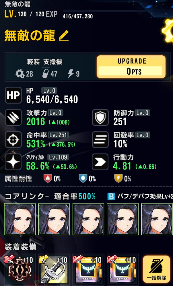 ステータス:適当。バフ込み命中800%(251)、残りクリ率