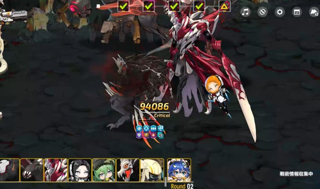 1ウェーブ目の1ラウンド目はパッシブ3の一部効果(攻撃/クリ率バフ)が適用されていないのに注意。初手は待機すればOK