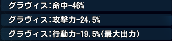命中に関しては2ラウンド目以降、アクティブ①を2回使用していれば、累計で命中-184%のデバフ