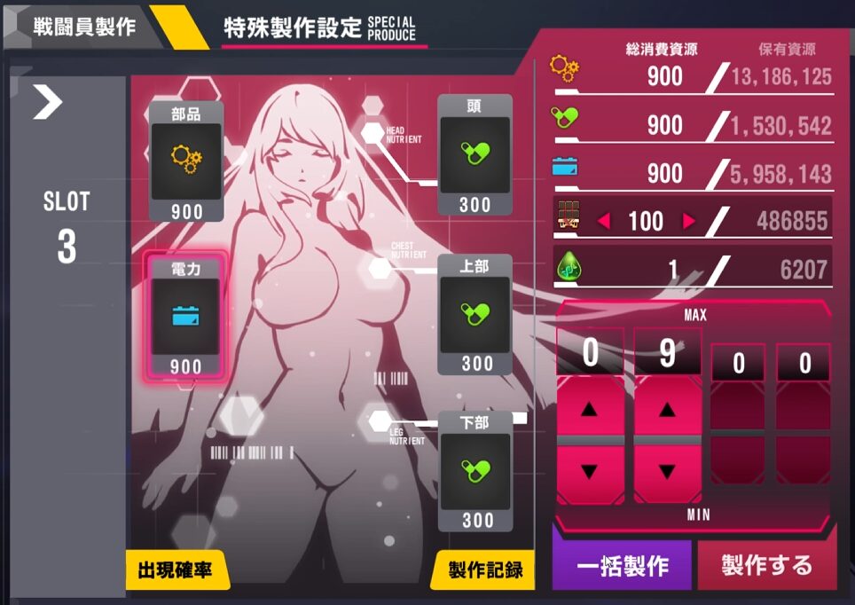 部品900・栄養900・電力900・高級モジュール100個