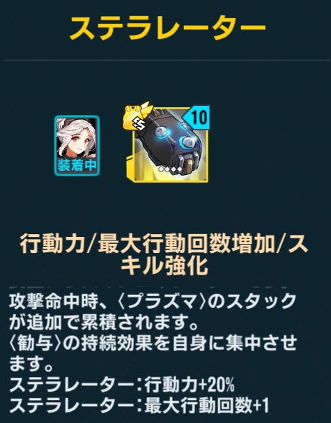 専用装備が非常に強力だが…これを装備すると味方バイオロイドを対象にした攻撃/クリ率/命中バフがラビアタに集中するようになる。