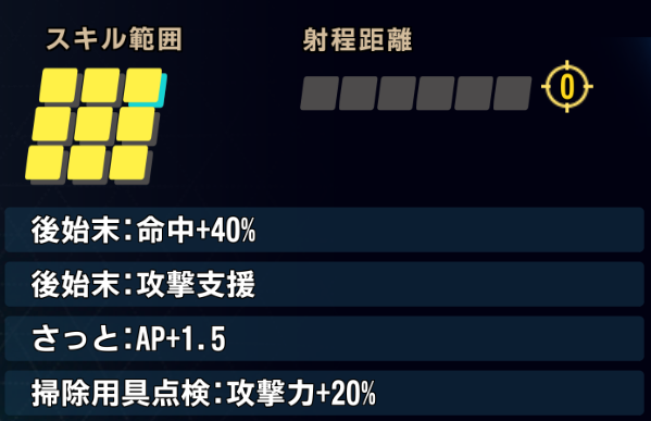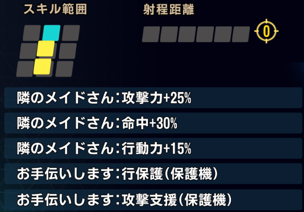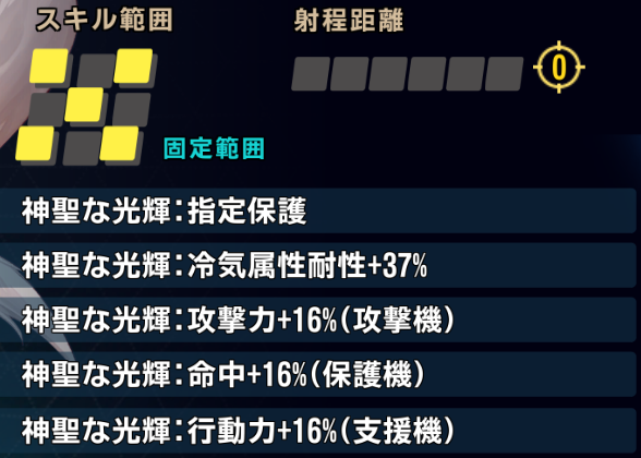 範囲内の攻撃機、支援機に攻撃支援を付与+命中バフ