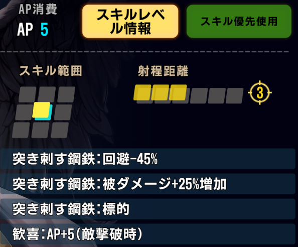 - スキルの射程/消費APが優秀。手数が多い