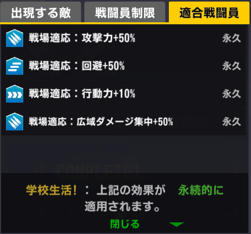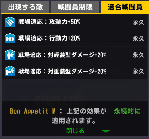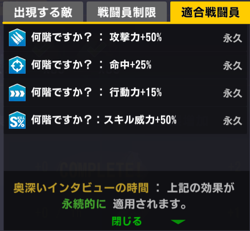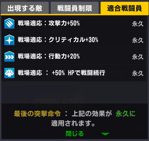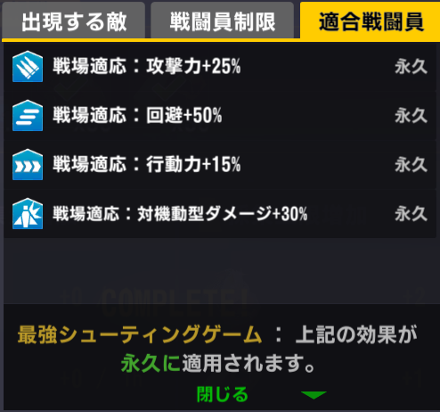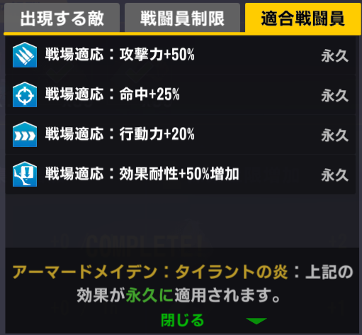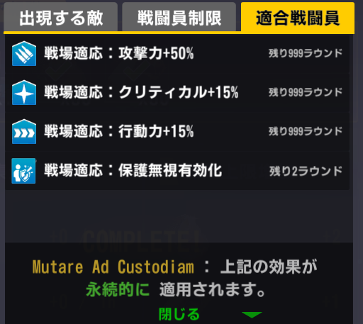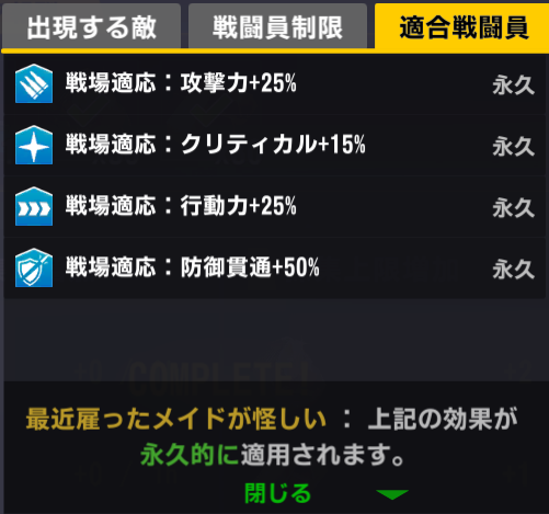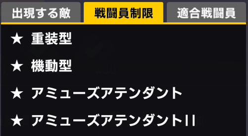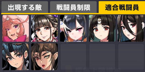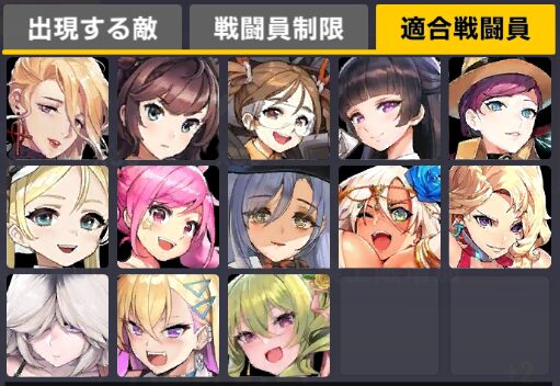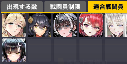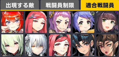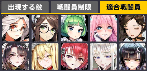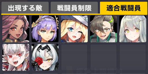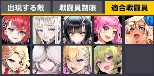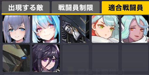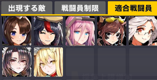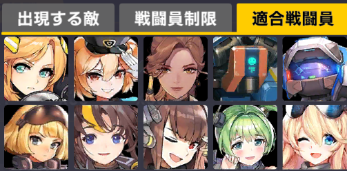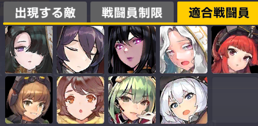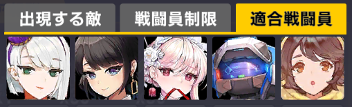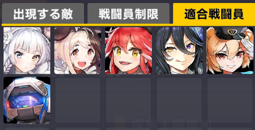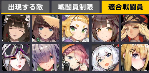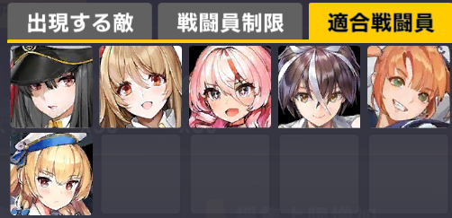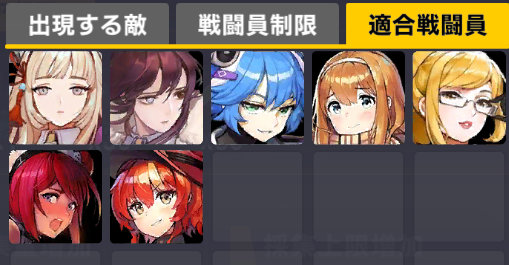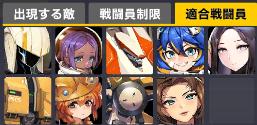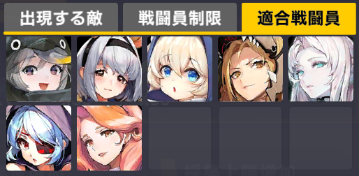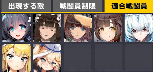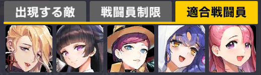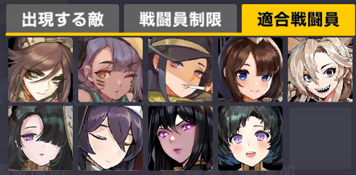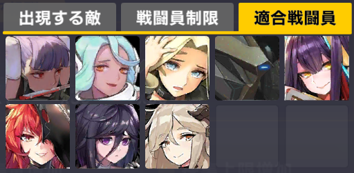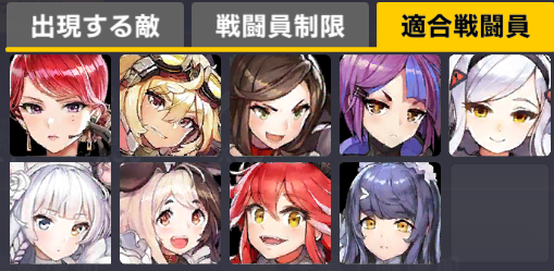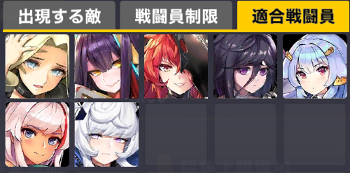 適合戦闘員もクイーズオブメインとメリーを使っているのでパッと編成を組みにくい。支援機制限は結構きつい