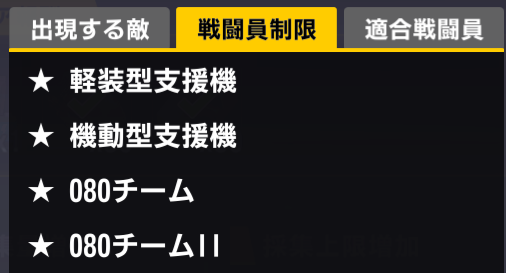 軽装型支援機、機動型支援機と080メンバーが使用不可。