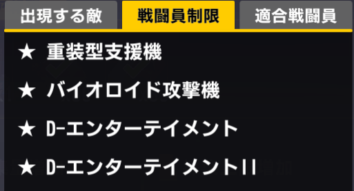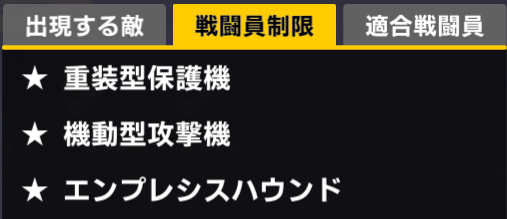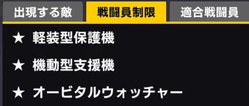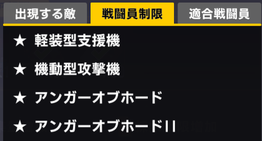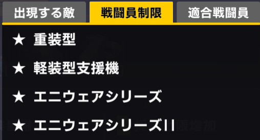 重装型、軽装型支援機、エニウェアシリーズが制限