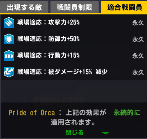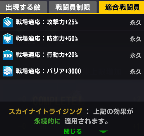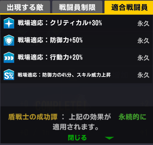 適合戦闘員の防御+50%バフ…大抵役に立たないが、フリッガ、アイアスに対してはあり