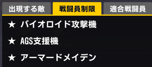 バイオロイド攻撃機とAGS支援機が使用不可