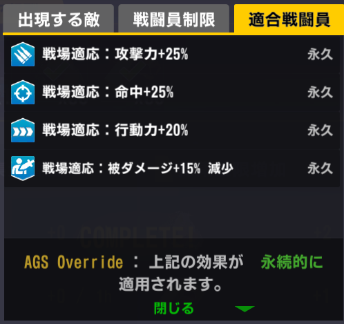 適合戦闘員は「AGS Override」