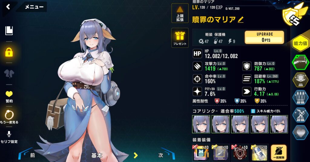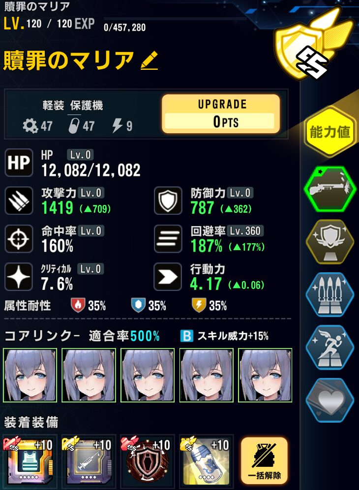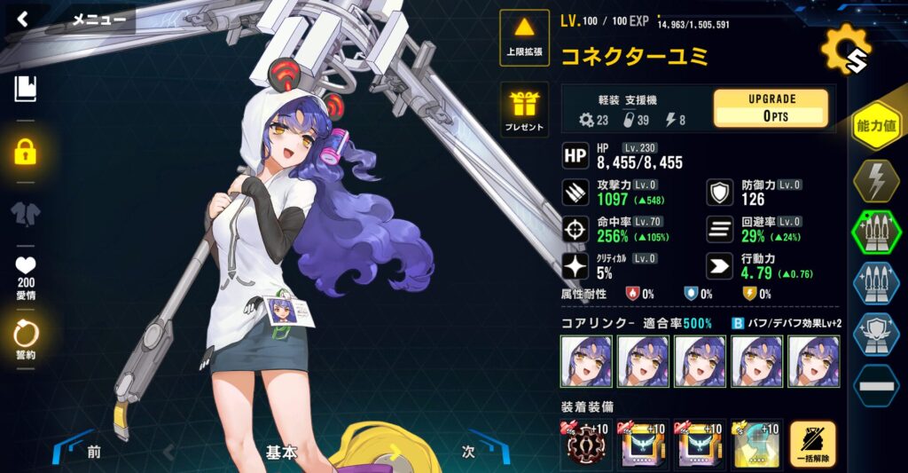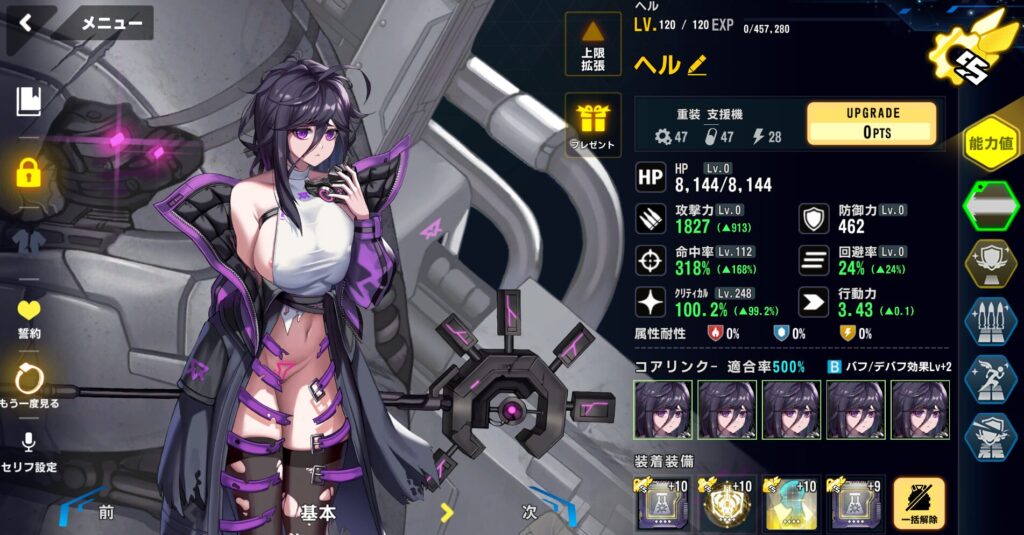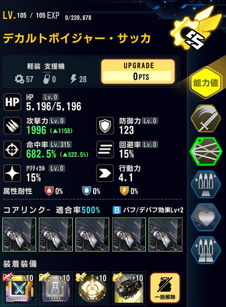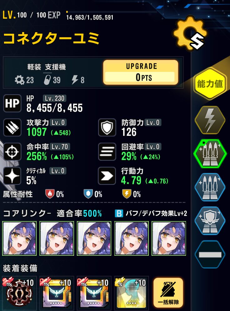 適合戦闘員のAPバフで最速1ラウンド目に行動しないように軽装型支援最適化システムではなく、標準型戦闘システムを採用。行動力を落としている。