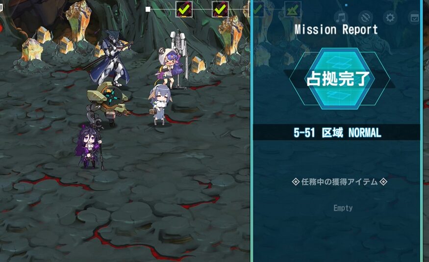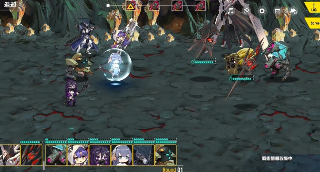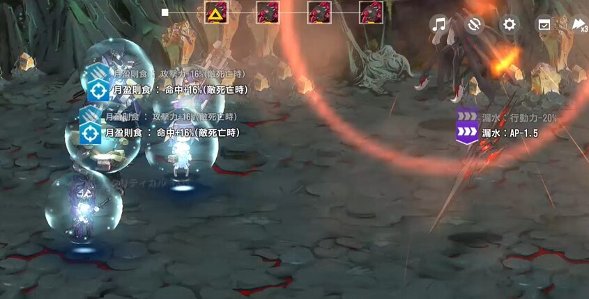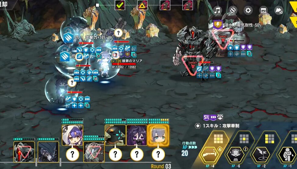 敵に状態異常耐性を付与する奴がいて、2ラウンド目にサッカのスキル使用不可が弾かれ、殴られたりするけど…フォールンの範囲ダメージ分散、マリアのバリアのおかげで耐え