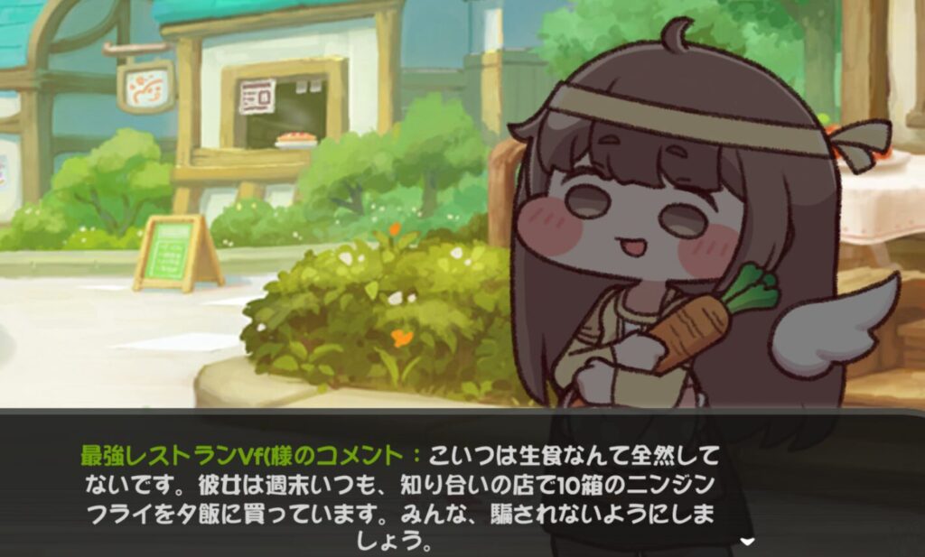 好感度上げの注意点として、1日に同じ使徒に何度も料理提供はできない。